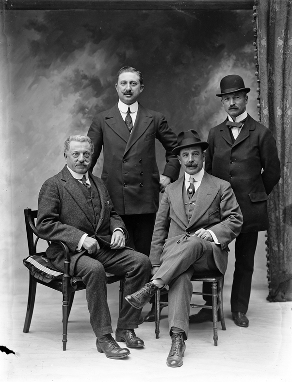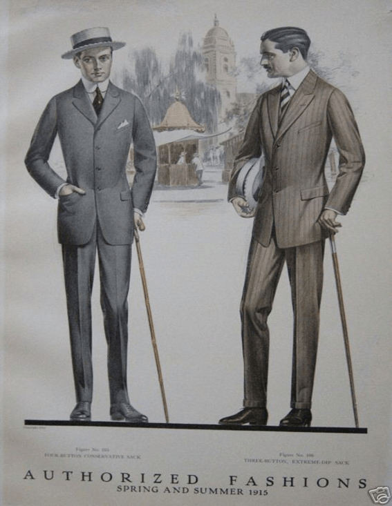 Men during 1900-1909 wearing middle class men’s suit .. casual men’s wear and the “wash and wear”clothing. Men in 1910 considered hat and stick in their hand as a trend with their lighter fabrics and simpler suits grew in popularity .