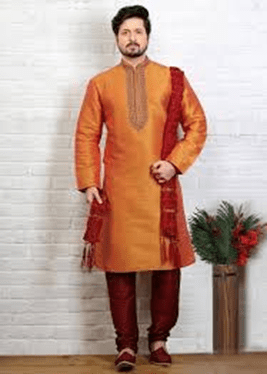 For men, traditional clothes are the Sherwani, Bandhgala, Lungi, Kurta, Angarkha, Jama and Dhoti or Pajama. Additionally, recently pants and shirts have been accepted as traditional Indian dress by the Government of India. Ancient man used to attire a loose fit single piece of clothing called Dhoti. It was draped around the legs and one end was tucked along the waist. This extremely comfortable traditional man wear has definitely gone out of fashion as far as cities are concerned but has paved way for the birth of new traditional inventions. Today in the contemporary times western styling rules the man clothing collection so does that mean traditional ethnic men wear has vanished. Well, the answer to it is no. Our motherland has a rich cultural heritage and it is this rich diversity that has fascinated our Indian fashion designers to showcase these beautiful diversities in their exclusive designs.